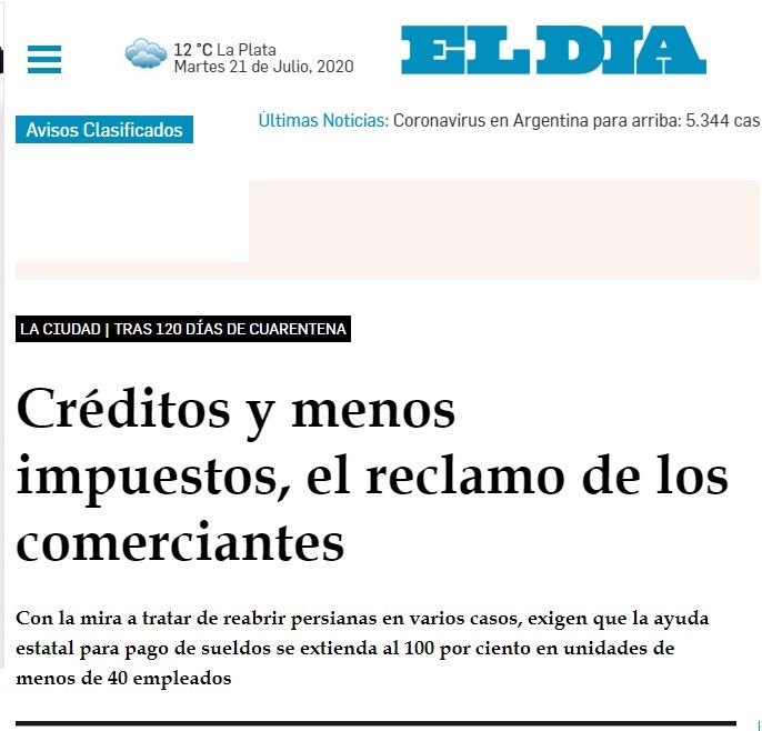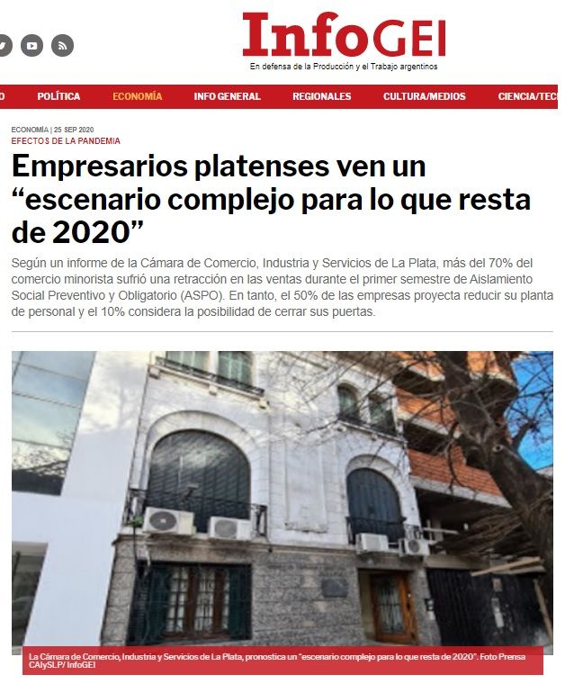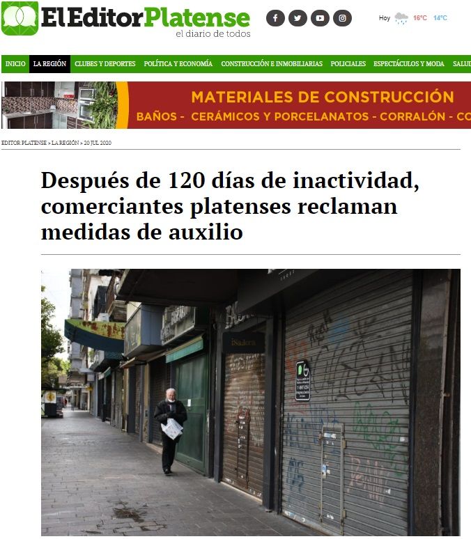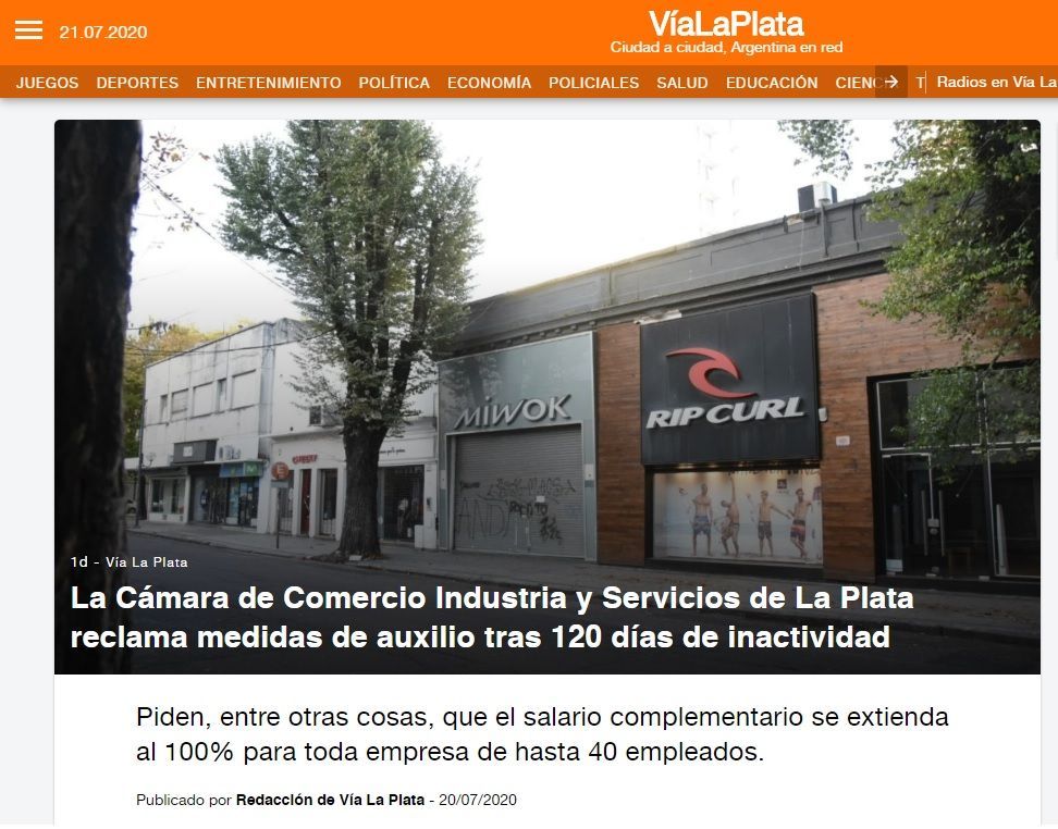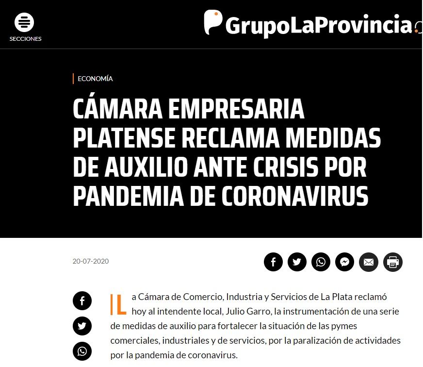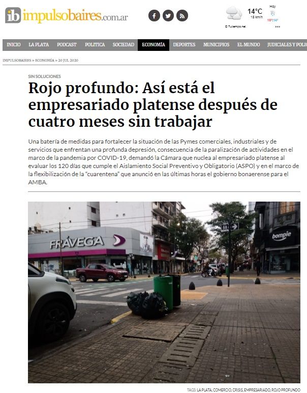 Bajo la lupa de los principales medios de comunicación de La Plata, las medidas de auxilio que reclama la Cámara, frente a la reapertura progresiva de las empresas, después de 120 días de aislamiento por el COVID-19