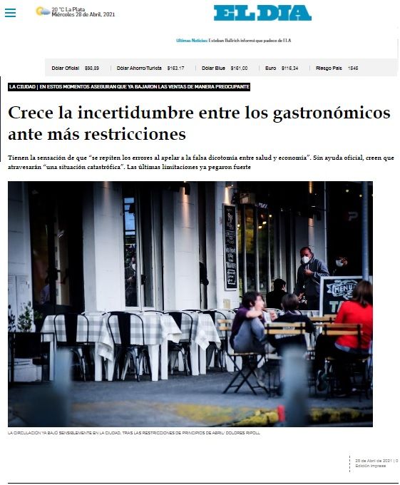 En alerta, otra vez, a raíz del momento que atraviesa la gastronomía de la Región, al cual se le restringió, en principio, durante dos semanas, por el desenfreno en los casos de Covid, la atención de clientes dentro de los locales e incluso fuera de ellos después de las siete de la tarde, la Cámara de Comercio e Industria de La Plata se manifestó por la crisis que producen en el sector esas medidas.