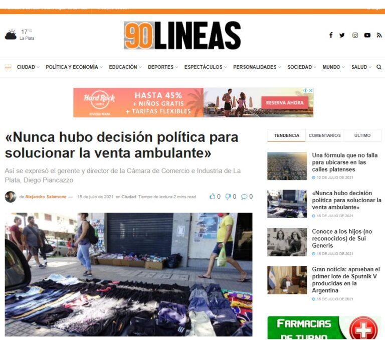 Reflejo en medios locales de los reclamos de la Cámara respecto al incremento de la venta ilegal.