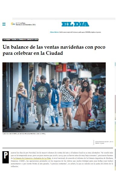 Análisis de la Cámara en relación a las ventas navideñas, reflejado en los medios locales.