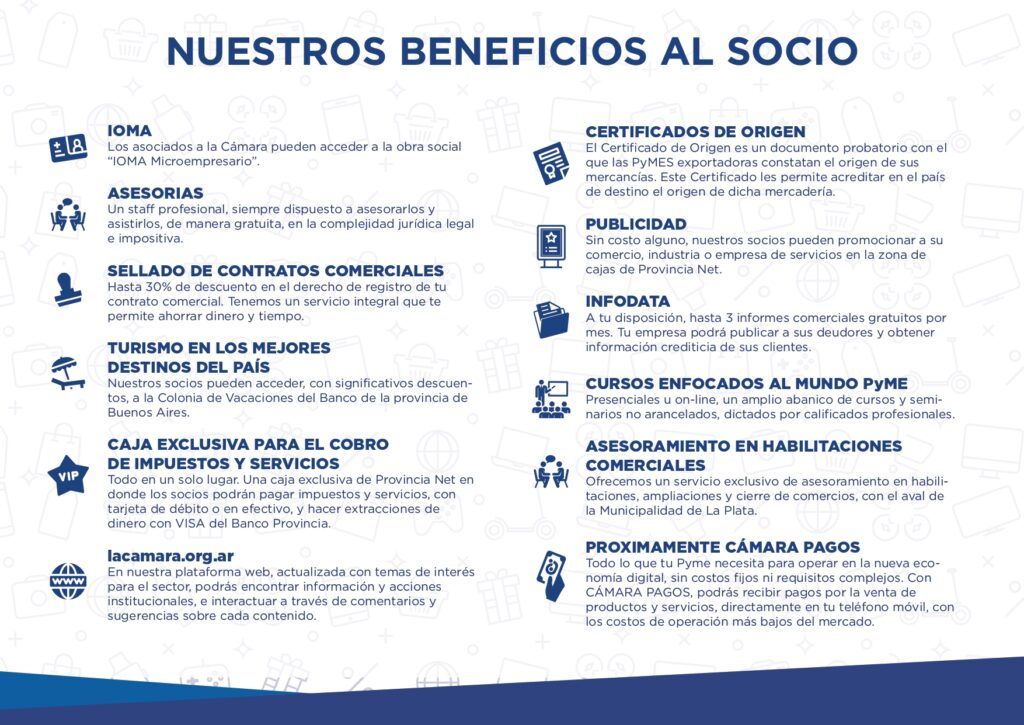 Facturas de servicios, impuestos, IOMA, educación y alquileres (para clientes de inmobiliarias que tienen convenio con la Cámara), son algunos de los pagos que pueden realizarse en la sede de nuestra institución.